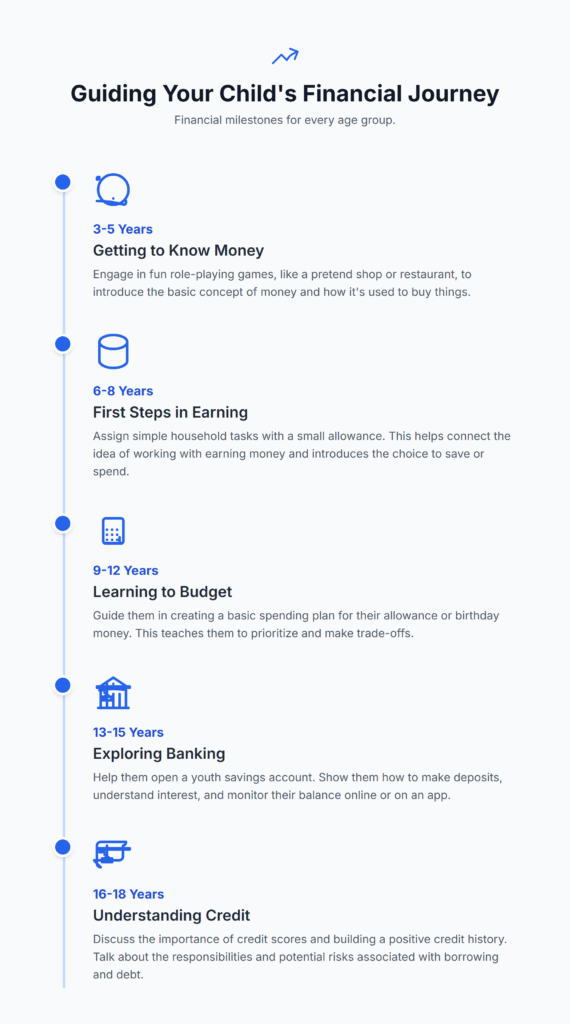 That doesn’t mean you need a degree in finance to help your kid. You need consistent, age-appropriate conversations and hands-on activities. Think of money lessons like teaching riding a bike: start small, practice often, and slowly pull back support as they gain confidence.
