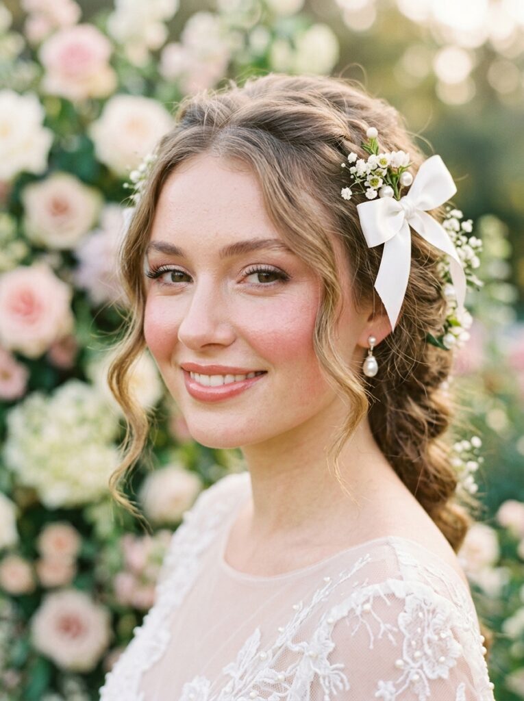 - Half-up styles with ribbons