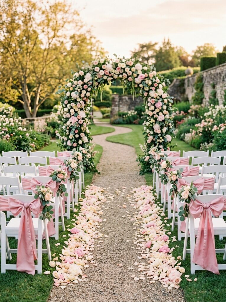 - Aisles lined with petals or candles